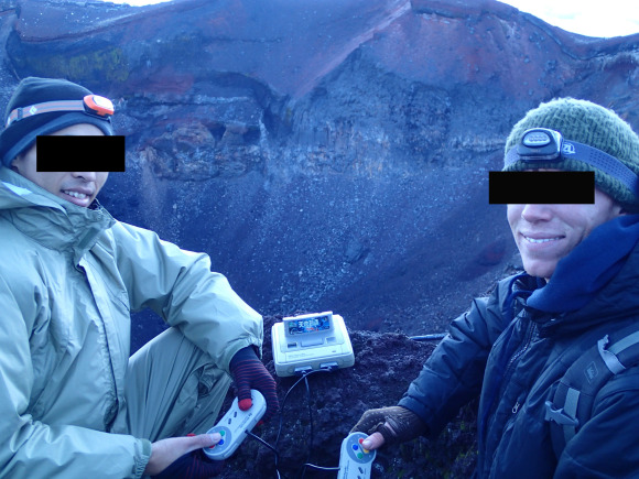 日本人男性がスーファミ持って富士登山 ゲームの誕生日祝う (3)