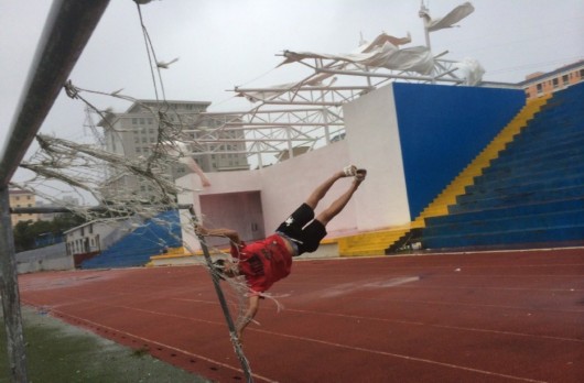 広東省の男子學(xué)生が臺(tái)風(fēng)の威力を「表現(xiàn)」 (2)