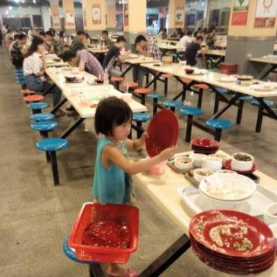 寫真の女の子は6歳で、同學(xué)院食堂で料理を販売する業(yè)者の娘だ。父親が忙しい時(shí)、彼女は自分の店の食器を回収するのを手伝っている。