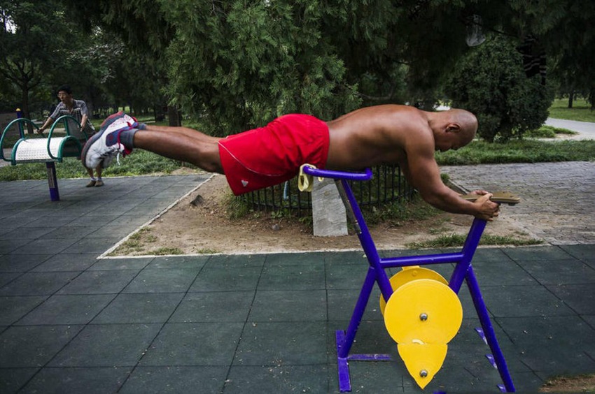 おばさんパワーに負(fù)けない!公園で鍛えるおじさんたちの筋肉美
