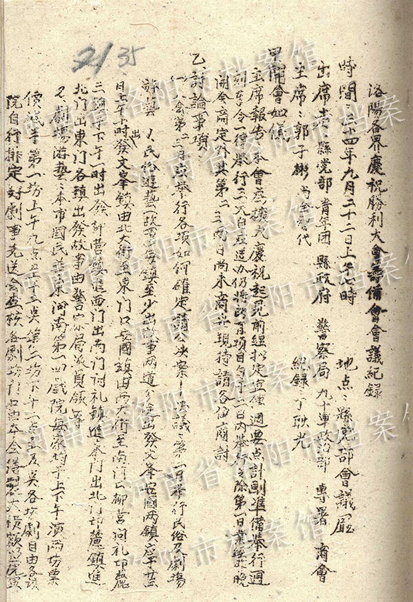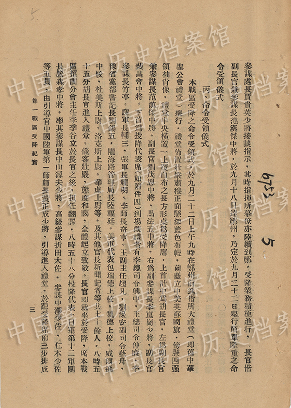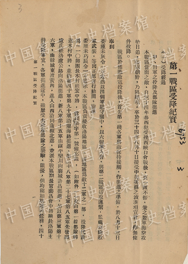 國(guó)家公文書局は4日、「?jìng)ゴ螭蕜倮D中國(guó)が降伏文書を受け取る」の第21部「洛陽區(qū)と襄樊エン城區(qū)の投降受け入れ」を公式サイトで公開した。