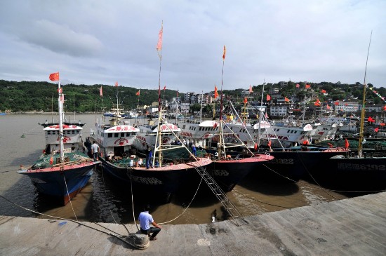 臺(tái)風(fēng)16號(hào)が襲來 浙江省の漁船は港に帰港 (7)