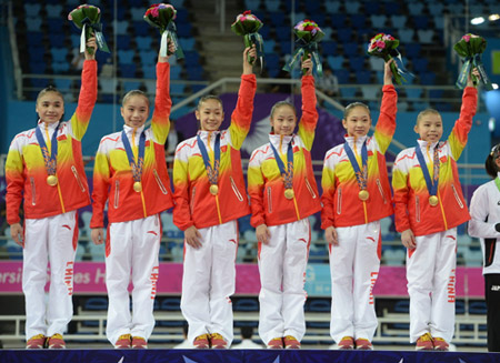 體操の女子団體総合が22日に行われ、午前中にすばらしい演技を見せた中國代表が229.300點で金メダルに輝いた。中國體操女子はこれで団體11連覇となる。朝鮮が銀メダル、日本が銅メダルを獲得した。<詳細へ>