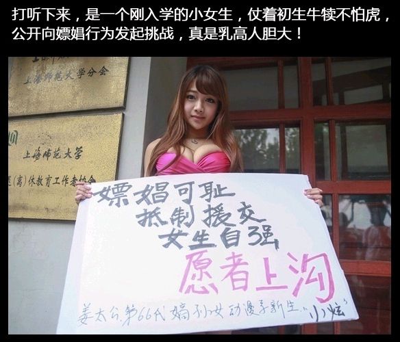 上海の大學(xué)で女子學(xué)生による援助交際反対のパフォーマンス (2)