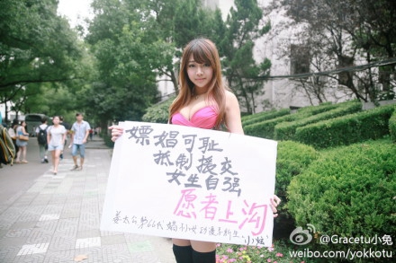 上海の大學で女子學生による援助交際反対のパフォーマンス (9)