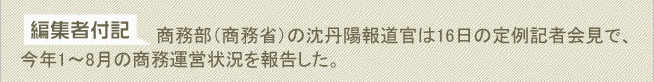沈報(bào)道官は「中國(guó)の外資導(dǎo)入の増加率は鈍化しており、月別でみるとマイナス成長(zhǎng)の月もあるが、中國(guó)の投資環(huán)境が悪化しているためではない。これは反転の動(dòng)きではないし、今後の流れでもなく、現(xiàn)在のグローバル経済情勢(shì)に応じた短期的な調(diào)整なのだ。長(zhǎng)期的にみて、中國(guó)の投資環(huán)境にはなお一定の強(qiáng)みがあり、外資導(dǎo)入はこれからも増える可能性がある」と述べた。