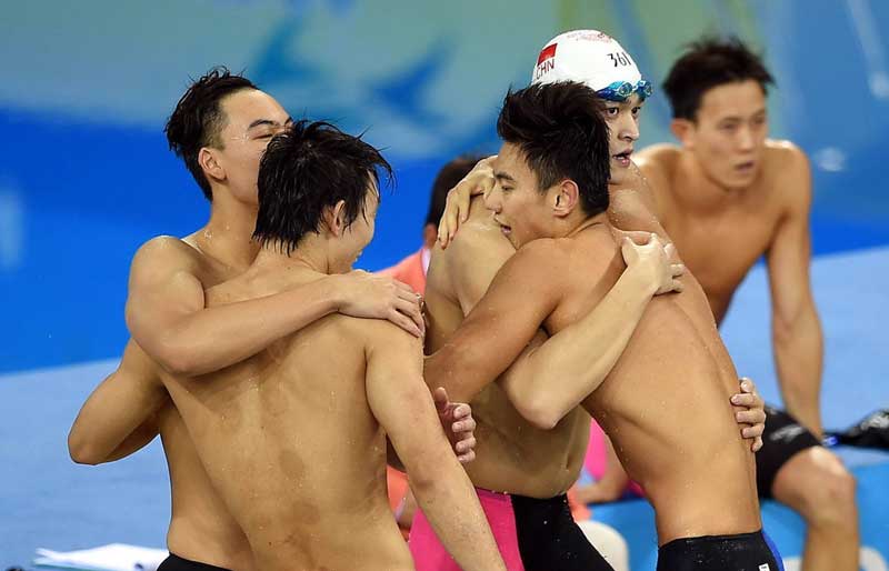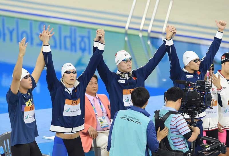 24日のインチョンアジア大會の競泳男子400メートルリレー決勝で、余賀新、林永慶、孫楊、寧沢濤からなる中國チームが金メダルを獲得し、そしてアジア記録を破った。日本が銀メダル、韓國が銅メダルを獲得した。人民網(wǎng)が伝えた。(編集YH)