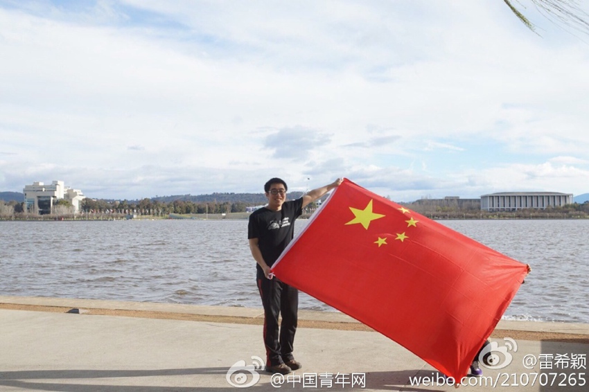 雷希穎さんは6日の提案文で「オーストラリアにいても、心は中國につながれている!國を離れて時間が経つほど『一人の中國人、一つの中國の情、一つの中國の心』という気持ちがますます深まっていく…中秋節(jié)間近だが、世界の華人は団結して中國を祝福しよう!五星紅旗と一緒に寫真を撮り、祖國へお祝いのメッセージを寄せよう。『私と國旗との記念撮影』というテーマで、微博を通じて『中國よ、愛している』というメッセージを伝えよう!」と呼びかけている。