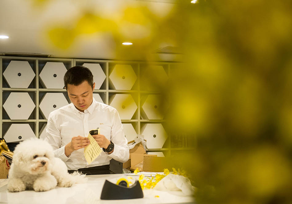 「どこにでもあるような普通の花屋はやりたくなかった。ハイレベルのものにしたかった」。孟昭然さんが目指すのは「花をただ売るだけという簡単なものではない」。彼はフラワーアートを主體に、他のデザインを融合させて最終的な作品を作る?;à蜻xび、デザインし、包裝をデザインし、アフターサービスを行い、アトリエのブランド文化を構(gòu)築する、こういった各段階で孟昭然さんは完璧さを求めている。