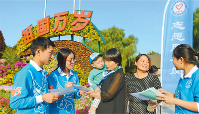 國慶節(jié)(建國記念日、10月1日)に合わせた7連休を目前に控えた27日、北京の観光名所?玉淵潭公園では、ボランティア約1600人を?qū)澫螭搜行蓼瑢g施された。
