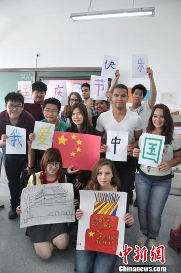 中國、留學生達も65回目の國慶節(jié)祝う (3)