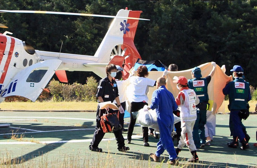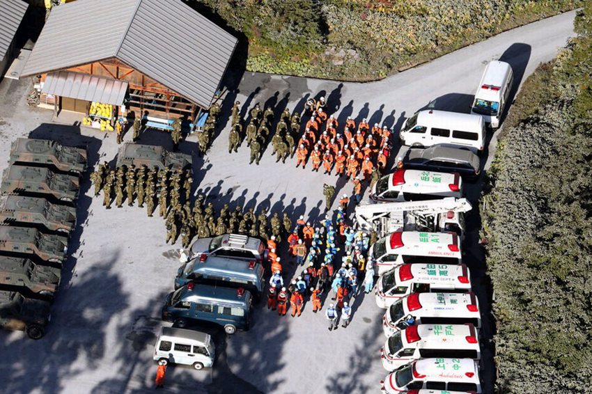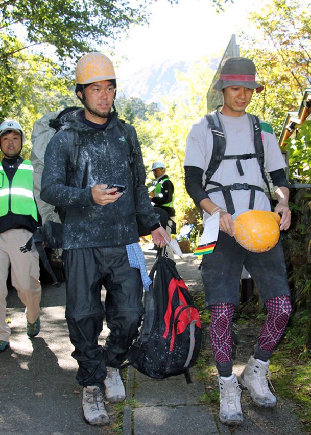 27日、28日の両日に負(fù)傷した登山客200人以上がすでに下山した。テレビ報(bào)道の畫面によると、下山した登山客はハンカチやマスクなどで口を覆い、衣服は灰まみれだった。
