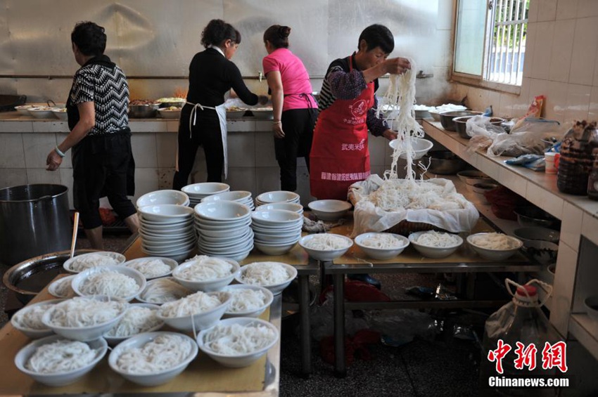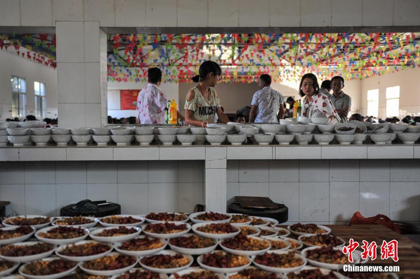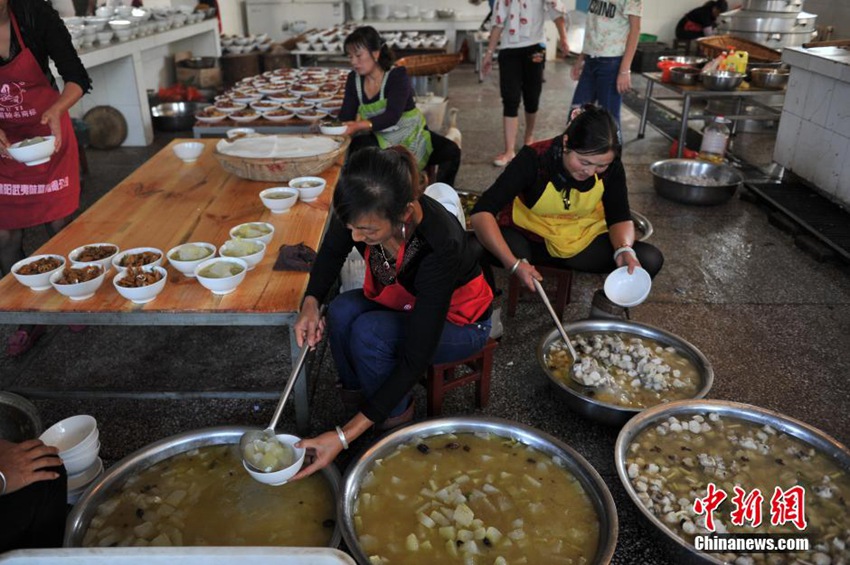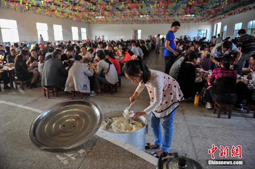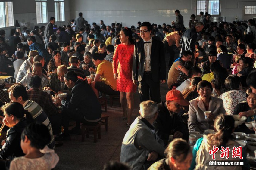 雲(yún)南省昆明市宜良県章堡村では6日、昆明で働く新郎新婦が故郷の農(nóng)村の習(xí)慣に基づく結(jié)婚式を挙げた。雲(yún)南省の農(nóng)村の伝統(tǒng)的な習(xí)慣では、村の公社が村全體の友人を招いて「大鍋飯」をご馳走する。調(diào)理するのは村の親戚や友人で、材料は家族が自分で購(gòu)入して準(zhǔn)備したものだ。ホテルでの挙式を見慣れた「都會(huì)人」にとって、こうした結(jié)婚式は獨(dú)特のものだ。中國(guó)新聞網(wǎng)が伝えた。(編集YH)