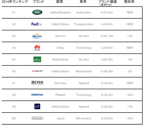 (寫真出典:Interbrand 編集:人民網(wǎng)日本語版)