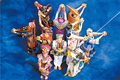 12日、閉幕式でパフォーマンスを披露する演技者ら。同日、広西チワン族自治區(qū)南寧市で開催されていた第45回世界體操競技選手権が閉幕した。
