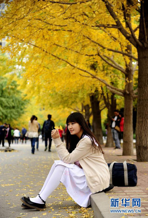 寫真は12日、遼寧大學(xué)の「イチョウの道」で寫真を撮影する人。秋が深まるのにともない、遼寧大學(xué)の「イチョウの道」では一面の金色のイチョウの風(fēng)景を?qū)W生や教師、瀋陽市民が寫真撮影する姿が見られた。同大學(xué)校內(nèi)のイチョウは植えられてから何年もの歴史を持つ。ここ數(shù)年、同大學(xué)のイチョウは注目を集め、瀋陽市民の秋の観光スポットになっている。新華網(wǎng)が伝えた。(編集YH)