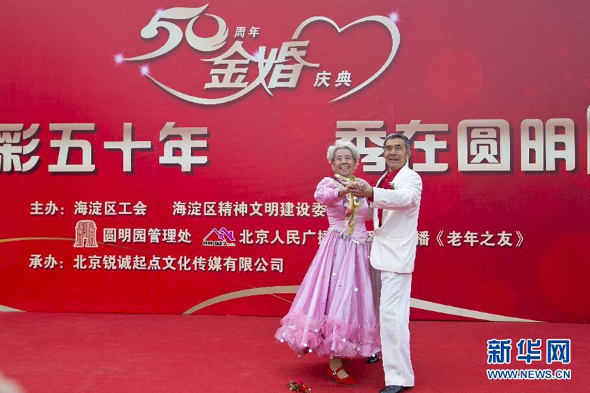 「金色の50年、円明園でショー」第3回金婚式が12日、北京円明園で行われ、社會各界から金婚式を迎える夫婦100組余りが參加した。參加者は彼らが苦楽を共に過ごしてきた50年を振り返った。新華網(wǎng)が伝えた。(編集YH)
