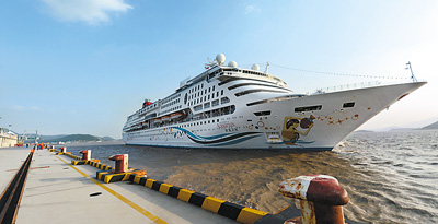浙江省舟山群島の國(guó)際クルーズ港が、10月13日に開港した。その投資総額は約6億3000萬元(約110億円)に達(dá)し、現(xiàn)在までに10萬トン級(jí)の埠頭が建設(shè)されている。設(shè)計(jì)上の年間乗客輸送量は延べ約50萬人。同港は中國(guó)で6カ所目の國(guó)際クルーズ港で、舟山群島新區(qū)で現(xiàn)在のところ唯一の國(guó)際口岸(出入國(guó)検査所)となる。寫真は開港後に迎えた1隻目のクルーズ「寶瓶星號(hào)」。人民日?qǐng)?bào)海外版が伝えた。(編集YF)