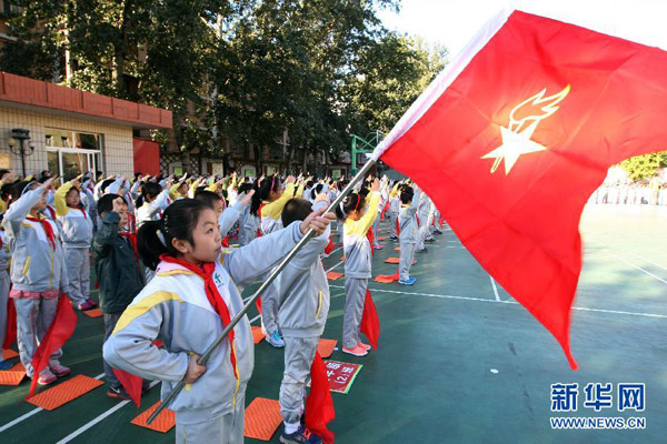 北京の小學(xué)生が中國(guó)少年先鋒隊(duì)設(shè)立65周年を祝う (2)