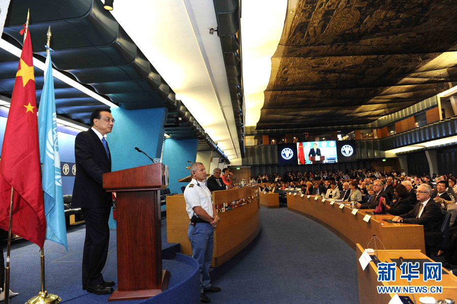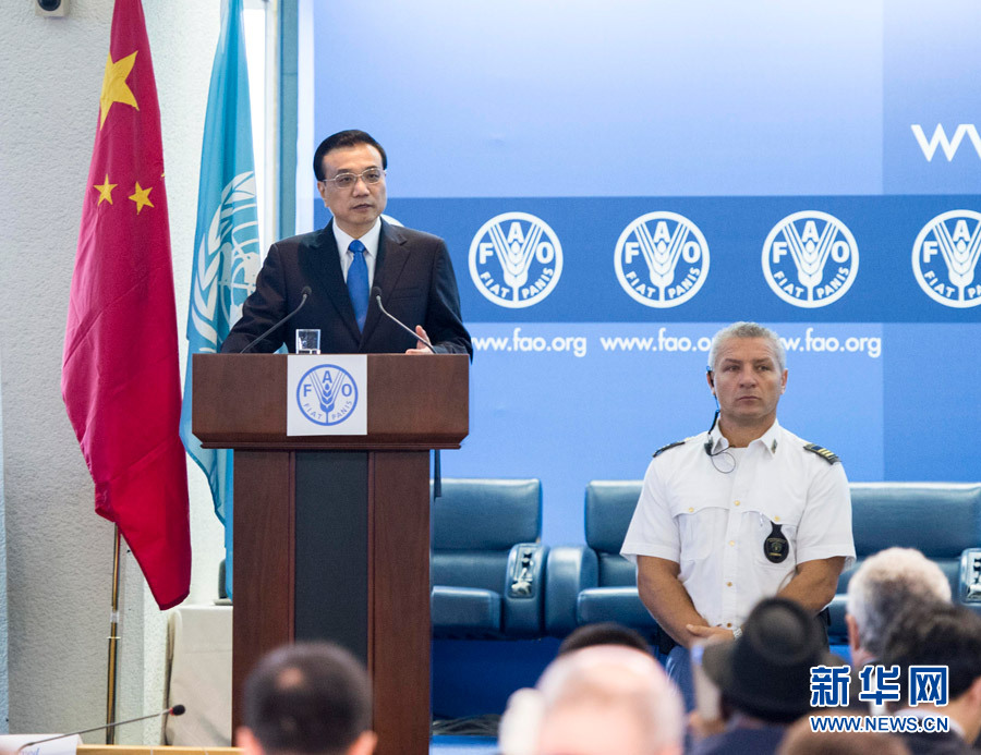 李克強(qiáng)総理は15日午前(現(xiàn)地時(shí)間)、ローマの國連食糧農(nóng)業(yè)機(jī)関(FAO)本部で演説「家庭経営によって農(nóng)業(yè)の近代化を推進(jìn)する」を行った。