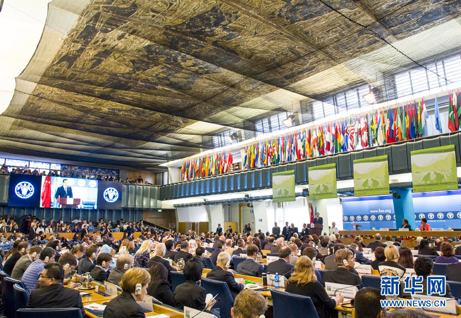 「中國の農(nóng)業(yè)生産がさらに新たな段階へ上がるには、経営規(guī)模を適度に拡大し、農(nóng)業(yè)近代化の道を歩まなければならない。途上國を始めとする各國と農(nóng)業(yè)技術(shù)、農(nóng)業(yè)裝備、農(nóng)業(yè)発展のモデルを余すところなく分かち合いたい。今後5年間で中國政府は農(nóng)業(yè)の南南協(xié)力用としてFAOに5000萬ドルを拠出するとともに、世界食糧計(jì)畫(WFP)や國際農(nóng)業(yè)開発基金への支援を拡大する」と述べた。