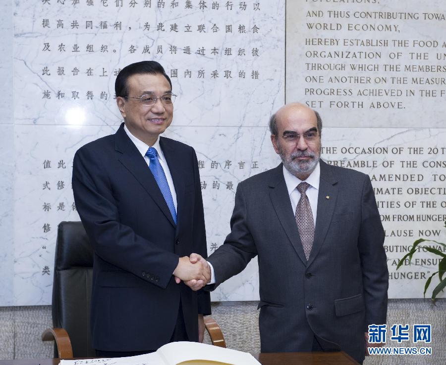 李克強総理は15日午前(現(xiàn)地時間)、國連食糧農(nóng)業(yè)機関(FAO)のグラツィアーノ事務(wù)局長とローマで會談した。