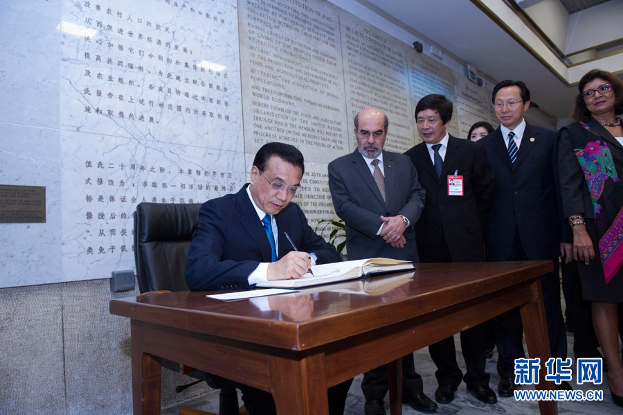 李総理は世界の食糧安全保障の確保、國際農(nóng)業(yè)協(xié)力の促進、貧困削減事業(yè)の推進におけるFAOの努力を積極的に評価?!甘臣Z安全保障を確保するには各國が食糧?農(nóng)業(yè)問題を國家発展の主要課題とすると同時に、國際社會が共同で努力することが必要だ。最大の発展途上國である中國は、すでに衣食の問題を解決したが、依然として何億もの貧困層を抱える。われわれは最大限の努力を盡くして、飢餓による貧困を根絶する。また、主に13億人の食の問題を自らしっかりと解決することで、世界の食糧安全保障に貢獻する自信がある。FAOとの意思疎通、調(diào)整、相互支持を一層強化して、農(nóng)業(yè)分野の南南協(xié)力?三者協(xié)力を深化したい。FAOが引き続き十分に役割を発揮し、世界の食糧?農(nóng)業(yè)ガバナンスシステムを整備し、政策調(diào)整と資源整合の取り組みを強化して國際農(nóng)業(yè)協(xié)力を促進する事を希望する」と表明した。