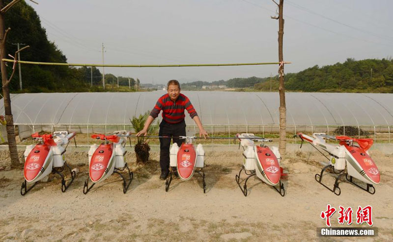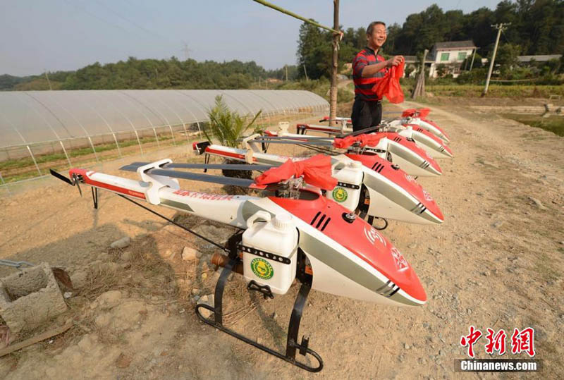 寫(xiě)真は15日、自分の畑の側(cè)で購(gòu)入した小型ヘリコプターを見(jiàn)せる湖南省長(zhǎng)沙県永華農(nóng)機(jī)専業(yè)合作社の丁雙輝さん。丁さんが購(gòu)入したのは「3ZD-10A超低空リモコン飛行植保機(jī)」という名前で、このヘリコプターを使って農(nóng)薬を散布すると少なくとも農(nóng)薬の約50%、水は90%節(jié)約可能だという。従來(lái)の手作業(yè)による耕作では1年に5-6回農(nóng)薬を散布する必要があり、人件費(fèi)は100元(約1750円)以上かかったが、小型ヘリコプターによる農(nóng)薬散布では1ムー(約6.67アール)あたりガソリン使用がわずか0.5元(約8.7円)で済み、人件費(fèi)や農(nóng)薬コストを70%近く節(jié)約できる。中國(guó)新聞網(wǎng)が伝えた。(編集YH)