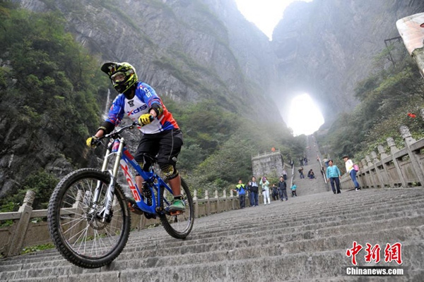 有名サイクリストが張家界天門(mén)洞で「天の階段」に挑戦 (4)