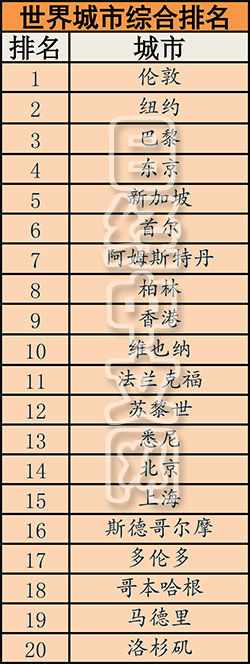 同ランクは経済、研究開発、文化交流、居住、環(huán)境、交通という6つの分野での70指標を數(shù)字化して総合実力の結(jié)果を計算した。2013年、北京と上海はそれぞれ12位と14位だった。
