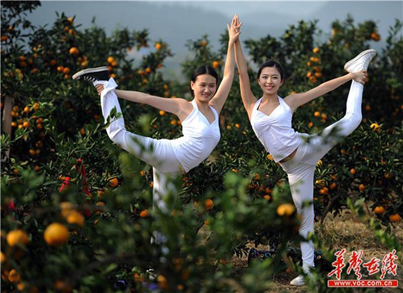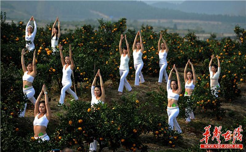 雪峰山麓に位置する湖南省邵陽市洞口県山門鎮(zhèn)のオレンジ果樹園ではこのほど、ヨガのコーチ30人が「オレンジ美人」として、有名な「雪峰蜜橘」をPRした。華聲在線が伝えた。