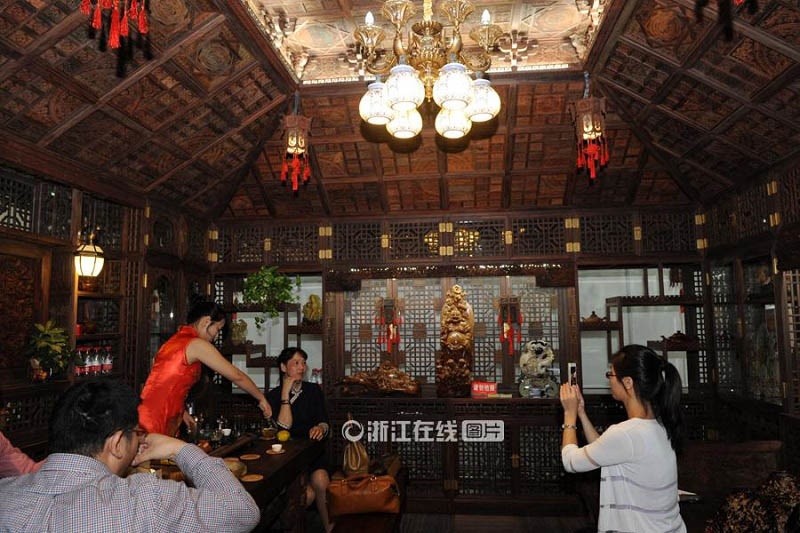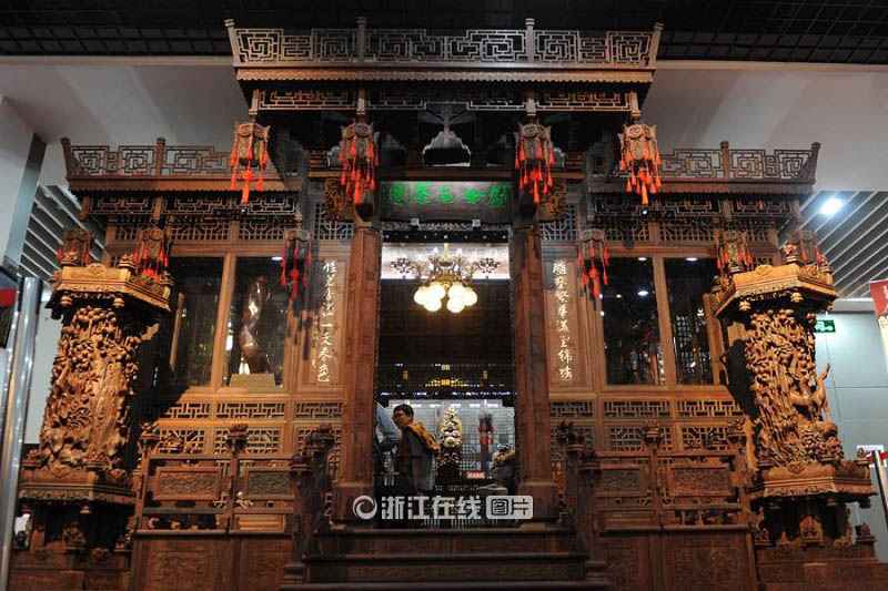 「木彫りの里」と呼ばれている浙江省東陽市で開催された2014年世界工蕓文化祭「百花杯」中國工蕓美術(shù)優(yōu)品展において、獨創(chuàng)的な大型木製彫刻作品「盛世品茶図」が展示され、來場者の注目を集めた。3億5千萬元(約61億円)の値がついた同作品は、東陽市の木彫職人が3-4年がかりで製作したもので、同展で金賞を獲得した。浙江在線が伝えた。(編集SN)