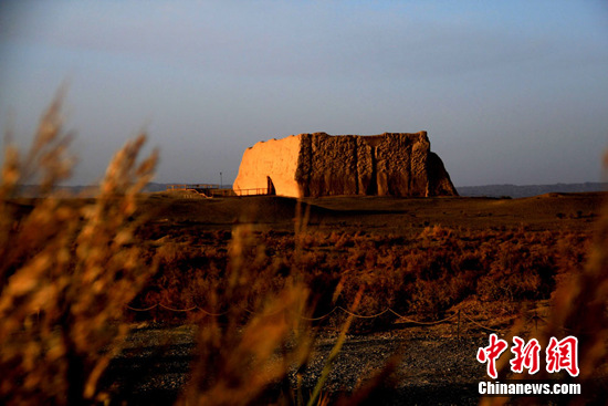 秋深まる10月、たそがれ時を迎えた世界文化遺産?玉門関遺跡に夕日が差し、その重厚さ、壯観さがより一層増している。遠くから眺めると、まるで油絵のように美しい景色だ。中國新聞網(wǎng)が伝えた。
