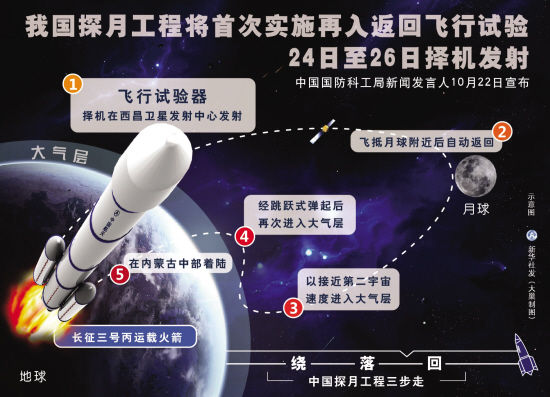 中國國家國防科技工業(yè)局月探査?宇宙プロジェクトセンター長、中國月探査プロジェクト副総指揮の劉継忠氏は22日、「中國の月探査プロジェクトは初の再突入?帰還飛行試験を?qū)g施する。飛行試験機は10月24-26日の間に、西昌衛(wèi)星発射センターから打ち上げられる。試験は8日間を予定している」と述べた??萍既請螭瑏护à?。