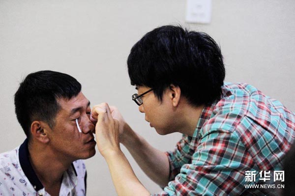 25日、被害者の検査を行う日本の醫(yī)師(右)。