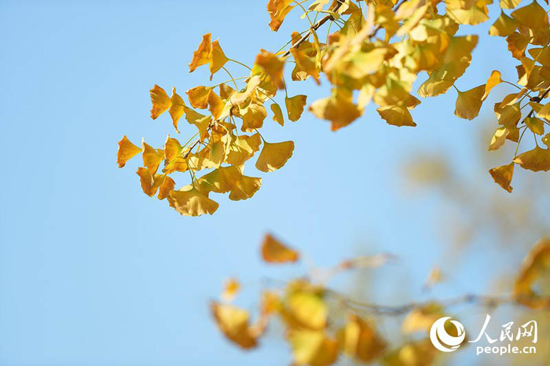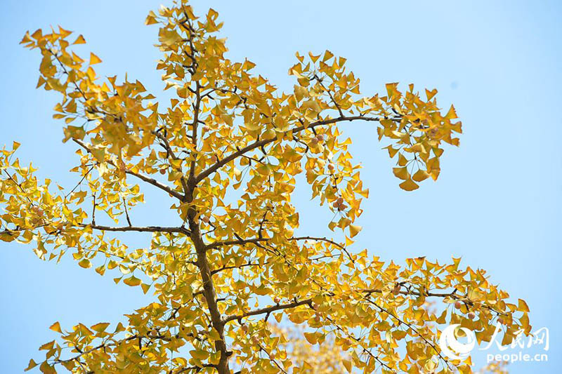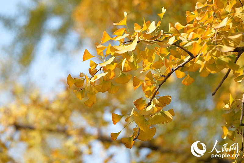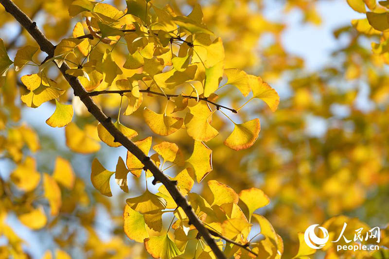 秋が深まるのにともない、北京?三里屯の東五街ではイチョウの葉が徐々に色づき、緑の葉の間に混じる黃色い葉が日差しの下でひときわ美しい姿を見せた。人民網が伝えた。(編集YH)