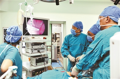 | 低侵襲手術(shù)で乳児の體內(nèi)から針を摘出する北京児童病院の専門家。 |