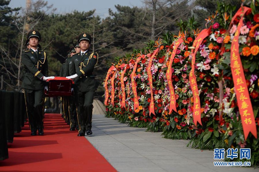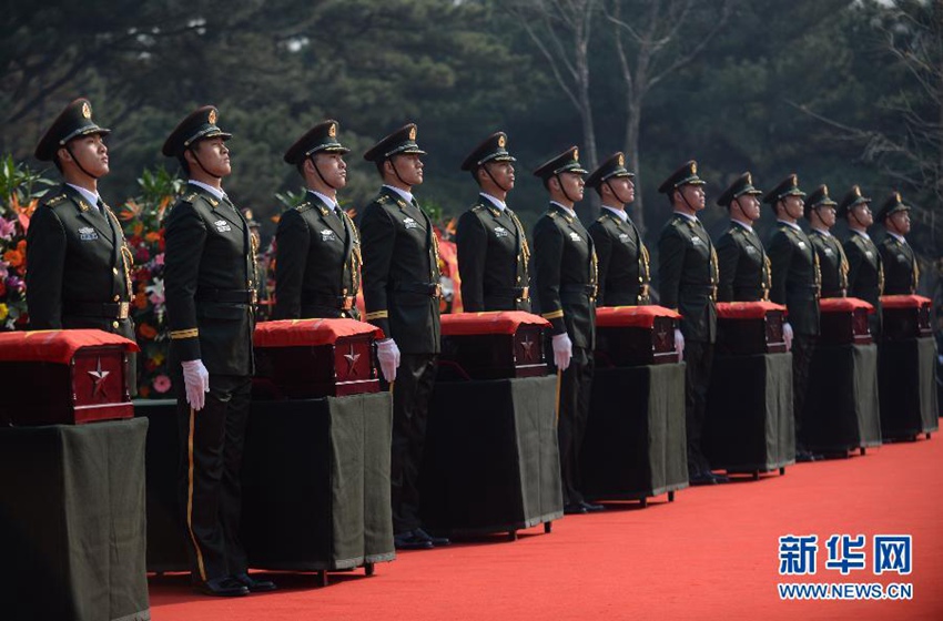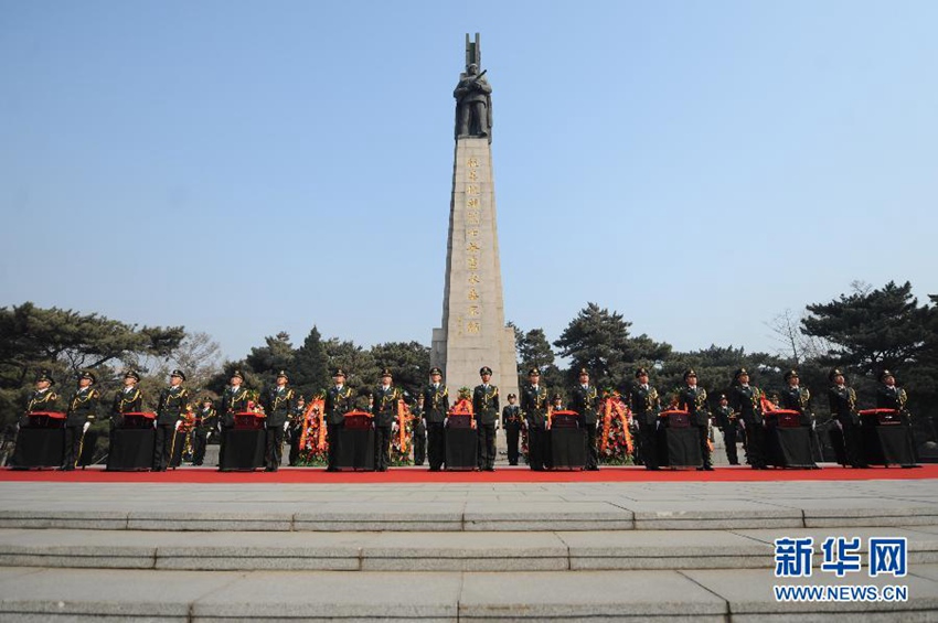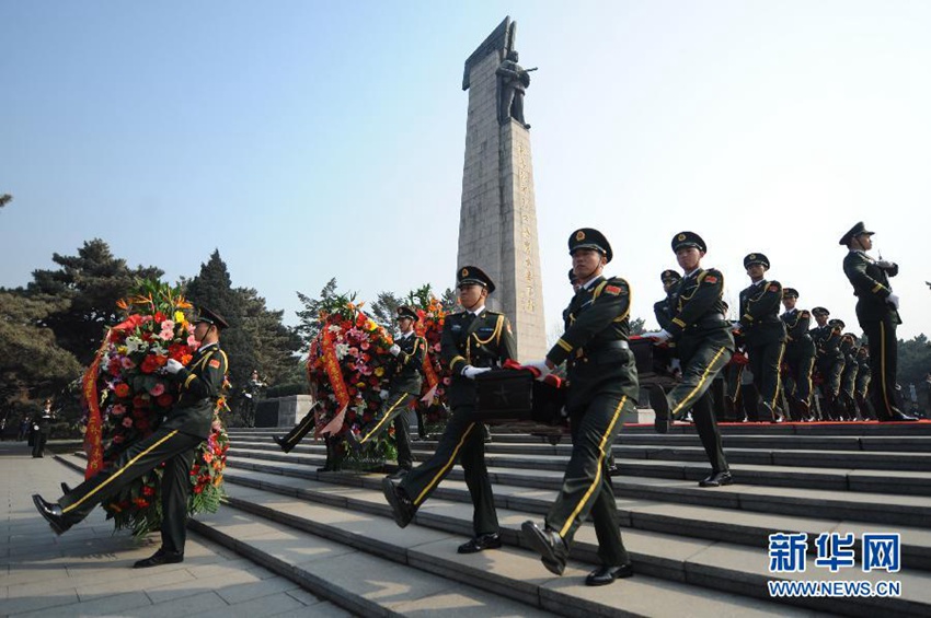 韓國から引き渡された志願軍烈士遺骸の埋葬式が29日、瀋陽抗米援朝烈士陵園で行われた。今年3月28日に韓國から中國に戻った志願軍烈士437人の遺骸は瀋陽抗米援朝烈士陵園の地下埋葬所に安置された。抗米援朝烈士の家族や元志願軍兵士、社會各界の800人以上がこの厳粛な瞬間を見守った。新華網(wǎng)が伝えた。(編集YH)