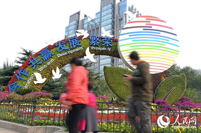アジア太平洋経済協(xié)力(APEC)會(huì)議の開(kāi)催を目前に控え、「調(diào)和とウィン?ウィン」というテーマの花壇がこのほど北京?東単交差點(diǎn)の東北角に登場(chǎng)した。また「平和的発展」というテーマの花壇も西単交差點(diǎn)の東北角に設(shè)置された。APECのためのこの2つの花壇の大部分は寒さに強(qiáng)い花で構(gòu)成され、會(huì)議終了後も展示される。人民網(wǎng)が伝えた。(編集YH)