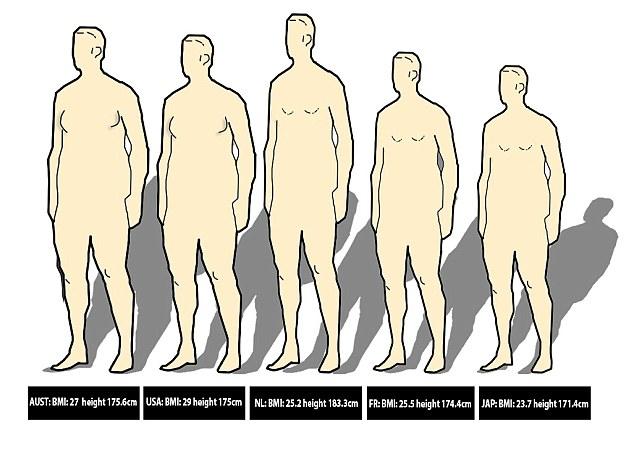 オーストラリアの男性は背が高く、スマートというのが一般的なイメージだが、最近の研究では決してそうではないことが分かっている。実際には、オーストラリアの男性の平均身長は175.6センチで、平均體重は85.9キロ、BMIは「27」と、肥満(1度)に相當(dāng)する。このように、オーストラリアでは、「肥満」が健康リスクを高めており、心臓疾患や糖尿病、高血圧の増加につながっている。しかし、オーストラリアの男性は、米國の男性よりはやせ形だ。米國の男性のBMIは「29」で、平均身長は176.4センチなのだ。日本の男性は、最も健康的で、BMIは「23」。その他、オランダの男性の平均身長は183.3センチで、BMIは「25.2」。フランスの男性の平均身長は174.4センチで、BMIは「25.5」だった。