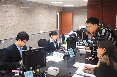 北京市公安局出入國手続センターでビザ発給手続きを行う市民