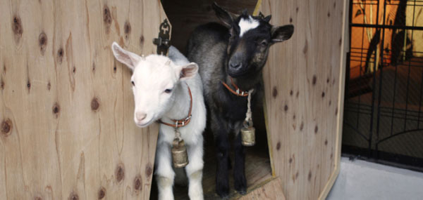 店內では可愛いヤギが2頭飼われていて、ヤギに草をあげたり、毎週2回ヤギと一緒に散歩することもできる。ヤギを飼い始めてから同店のお客は50%増加したという。同店ではおいしいランチも提供している。