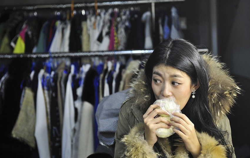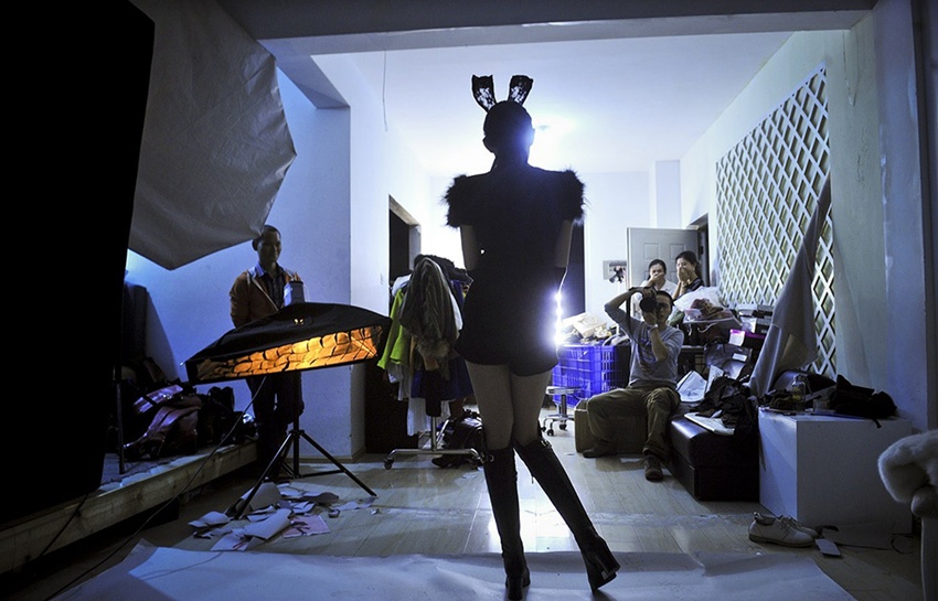 「今日の任務は150著」。朝7時、亜さんとメイクアップアーティストの長い一日が始まる。朝食を10分で済ませ、メイクには1時間、1著の服を著替えるのに1分、それぞれの服の撮影には3分という具合に分刻みのスケジュールをこなす。服1著あたりのポーズは5つ、1日で700回のポーズを決める。