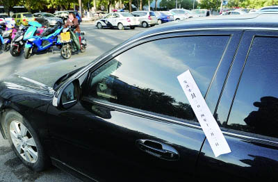 使用禁止の札が張られた某部門の公用車(11月5日、北京市西城區(qū))