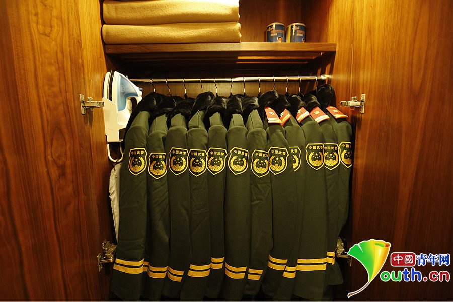 APEC會議期間、武裝警察部隊の任務(wù)に就く將兵はキャンプ內(nèi)と同様の生活習(xí)慣を維持し、ベッドに敷かれた寢具でさえキャンプ裝備品の緑色の寢具だ。(編集YH)