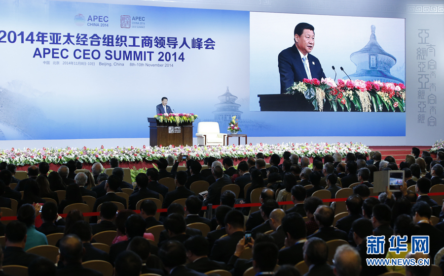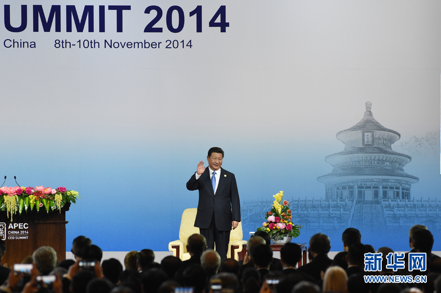 アジア太平洋経済協(xié)力會議(APEC)?CEOサミットが9日、北京國家會議センターで開催された。習(xí)近平國家主席は開幕式で基調(diào)講演「永続的発展を追求し、アジア太平洋の夢を共に築く」を行い、「現(xiàn)在中國経済には新たな常態(tài)が現(xiàn)れており、中國に新たな発展のチャンスをもたらすことになる。われわれは揺るぎなく改革事業(yè)を深めていく。中國の発展はアジア太平洋と世界に多大な機會と利益をもたらす。中國は地域各國と手を攜えてアジア太平洋の素晴らしい夢を?qū)g現(xiàn)することを望んでいる」と強調(diào)した。