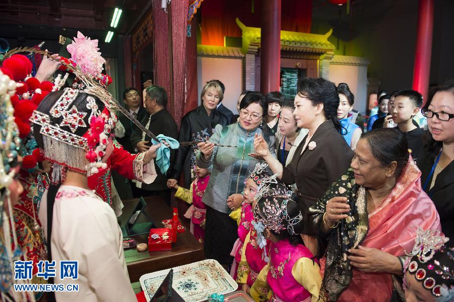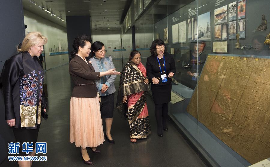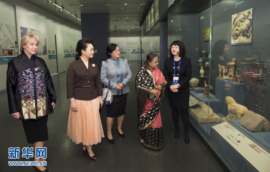 彭夫人は同日午前、バングラデシュ大統(tǒng)領(lǐng)、モンゴル大統(tǒng)領(lǐng)、上海協(xié)力機(jī)構(gòu)事務(wù)局長の夫人を心を込めて出迎えた。彭夫人らは「古都北京?歴史文化編」を共に見學(xué)。悠久の歴史と輝かしい文化を持つ古都?北京の魅力を生き生きと伝える貴重な展示品の數(shù)々に、夫人らは度々足を止めては見入り、解説に耳を傾けた。