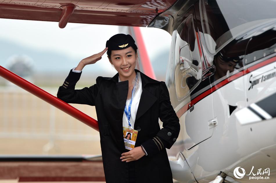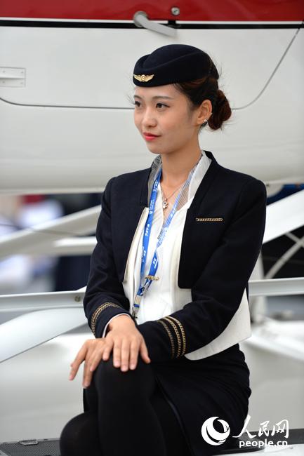 2014年珠海航空ショーの屋外展示エリアでは13日、客室乗務(wù)員が人気を集めていた。人民網(wǎng)が伝えた。(編集YH)