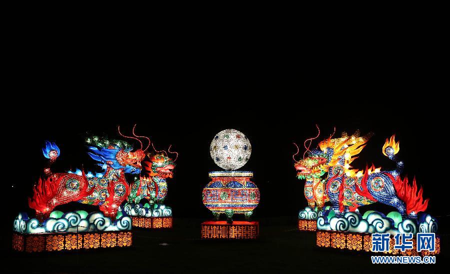 寫真は12日に英國南西部ウィルトシャー郡で撮影された巨竜の宮燈。竜全體は2萬3千點のグラスや皿をつなげて作られている。ウィルトシャー郡では14日、中國燈篭祭が行われ、7千點近くの燈篭が400年以上の歴史を持つ同地で展示された。これら美しい燈篭は中國?四川省自貢市から訪れた専門の職人100人以上が6カ月かけて製作した。同展は2015年1月まで行われる。新華網(wǎng)が伝えた。(編集YH)