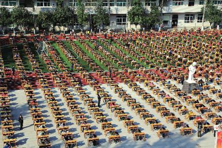 陝西省の學校で厳しいカンニング対策 校庭で試験、望遠鏡で監(jiān)視 (2)